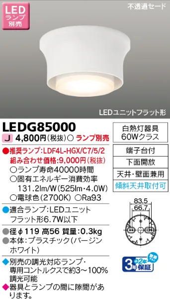 東芝ライテック シーリング LED小シーリングランプ別売 LEDG85000
