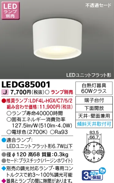 東芝ライテック シーリング LED小シーリングランプ別売 LEDG85001