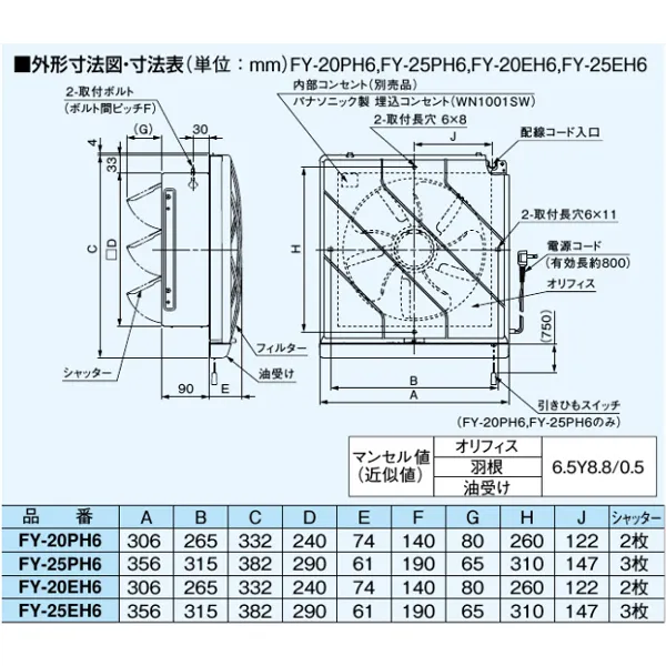 パナソニック 一般・台所用換気扇 フィルター付換気扇 FY-25EH6