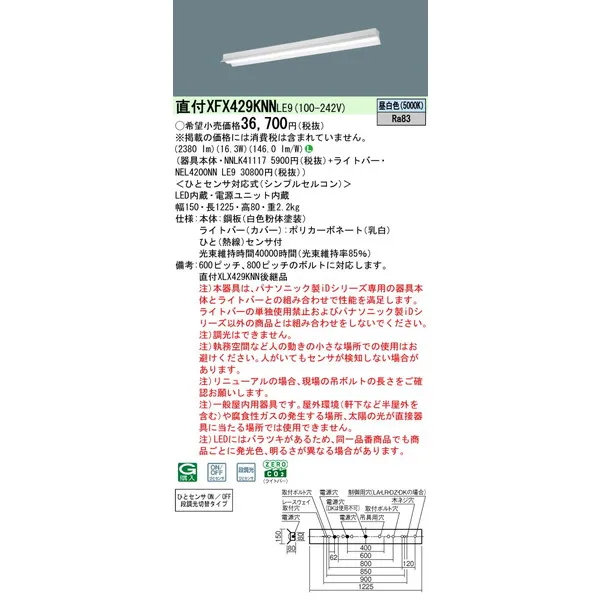 パナソニック 施設照明器具 LEDベースライト 天井埋込型 一体型 XFX429KNNLE9