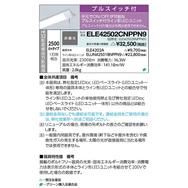 岩崎電気 LEDベースライト 天井埋込型一体型 ELE42502CNPPN9