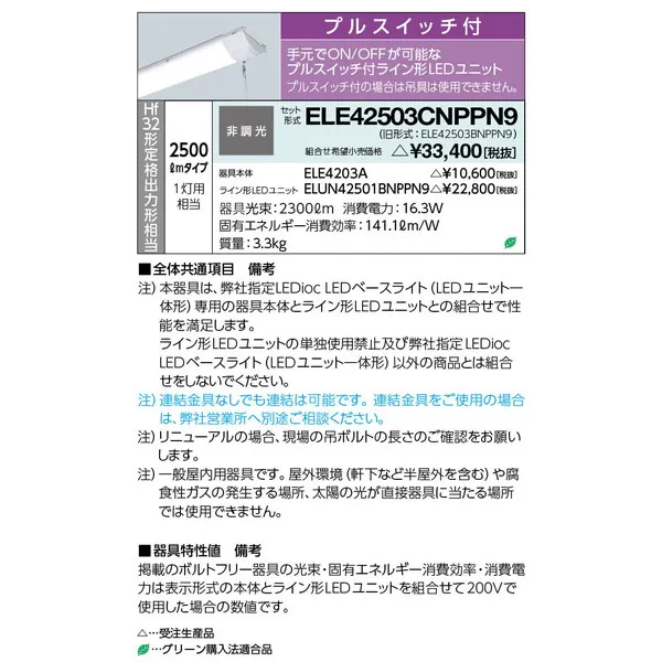 岩崎電気 LEDベースライト 天井埋込型一体型 ELE42503CNPPN9