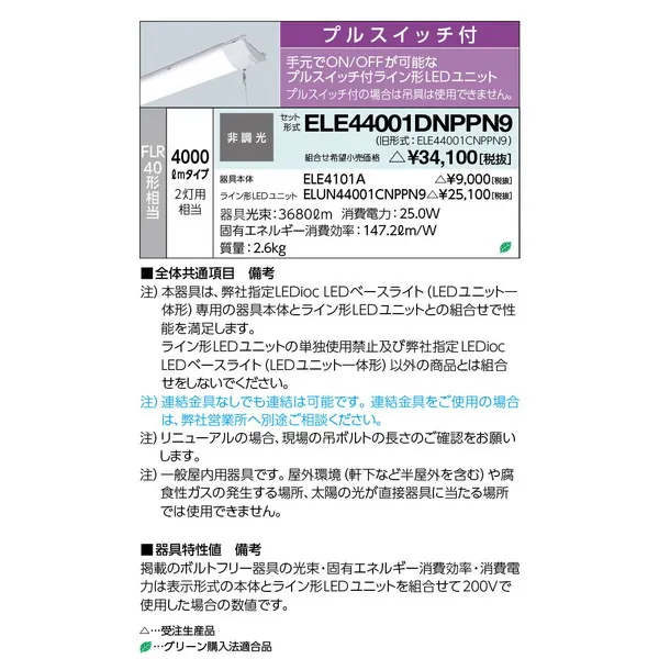 岩崎電気 LEDベースライト 天井埋込型一体型 ELE44001DNPPN9
