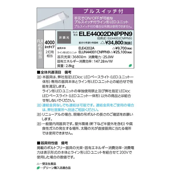 岩崎電気 LEDベースライト 天井埋込型一体型 ELE44002DNPPN9