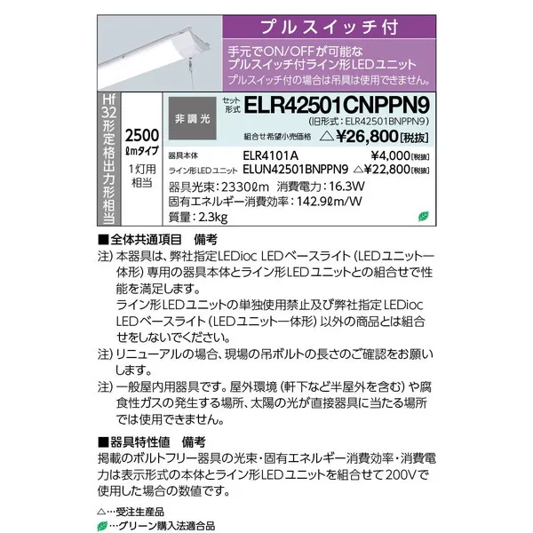 岩崎電気 LEDベースライト 天井直付型一体型 ELR42501CNPPN9