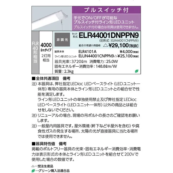 岩崎電気 LEDベースライト 天井直付型一体型 ELR44001DNPPN9