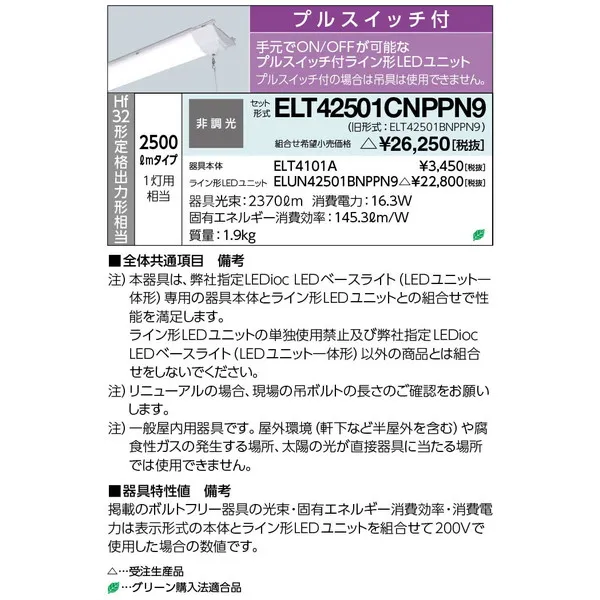 岩崎電気 LEDベースライト 天井直付型一体型 ELT42501CNPPN9