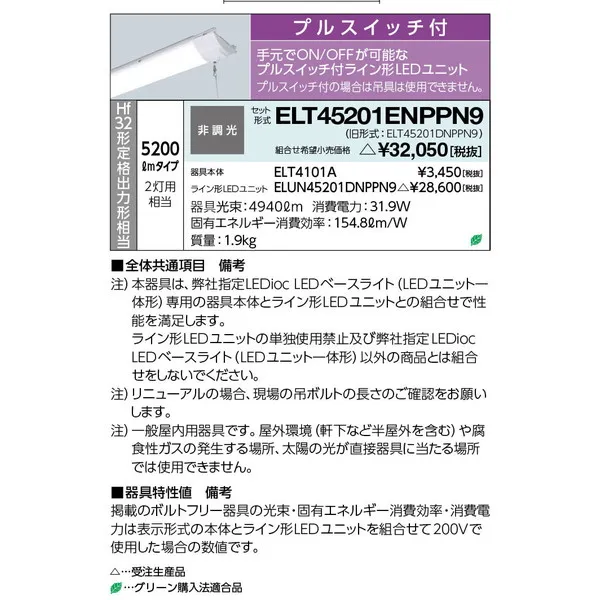 岩崎電気 LEDベースライト 天井直付型一体型 ELT45201ENPPN9