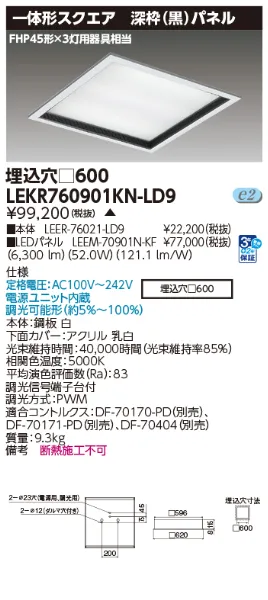 東芝ライテック LEDベースライト □600深枠黒N LEKR760901KN-LD9