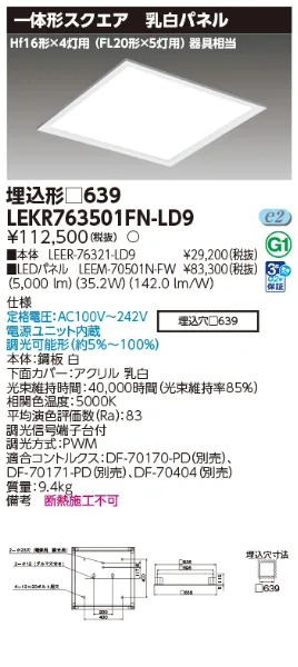東芝ライテック LEDベースライト □639乳白N色 LEKR763501FN-LD9