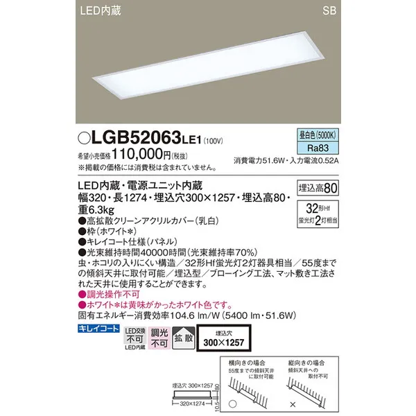 パナソニック 直管32形×2 LGB52063LE1