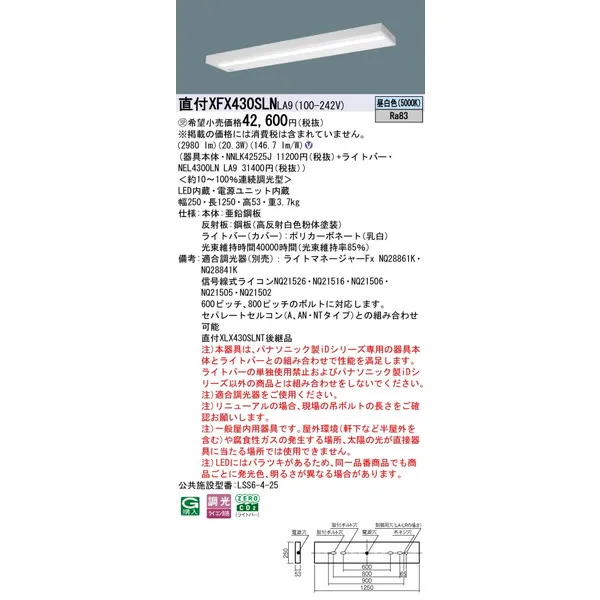 パナソニック 施設照明器具 LEDベースライト 天井埋込型 一体型 XFX430SLNLA9