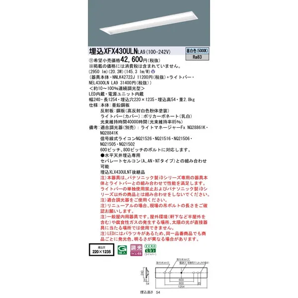 パナソニック 施設照明器具 LEDベースライト 天井埋込型 一体型 XFX430ULNLA9