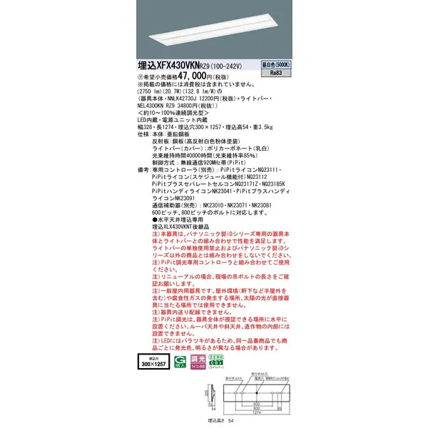 パナソニック 施設照明器具 LEDベースライト 天井埋込型 一体型 XFX430VKNRZ9