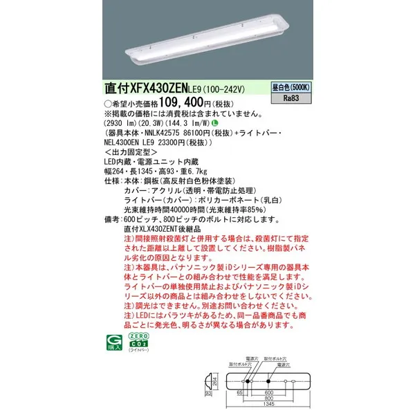パナソニック 施設照明器具 LEDベースライト 天井埋込型 一体型 XFX430ZENLE9