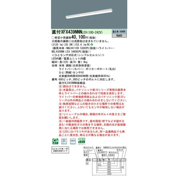 パナソニック iスタイル LEDベースライト 天井直付型 一体型 XFX439NNNLE9 リニューアル用