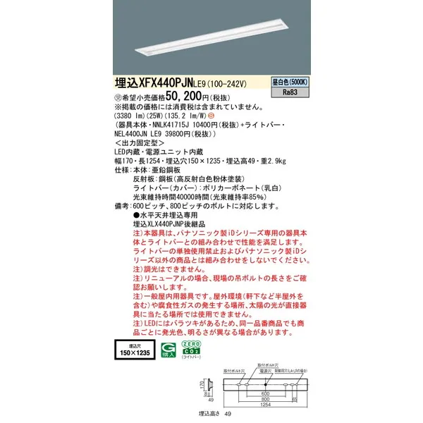 パナソニック 施設照明器具 LEDベースライト 天井埋込型 一体型 XFX440PJNLE9
