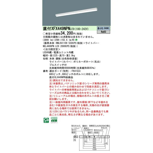 パナソニック LEDベースライト 天井直付型 一体型 XFX449NPNLE9 リニューアル用