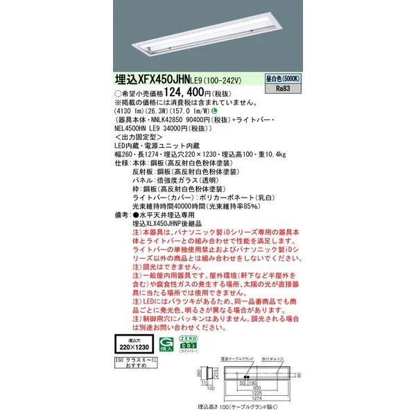 パナソニック 施設照明器具 LEDベースライト 天井埋込型 一体型 XFX450JHNLE9