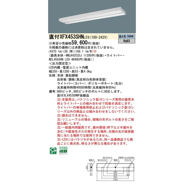パナソニック LEDベースライト 天井直付型 一体型 XFX453SHNLE9 スリムベース