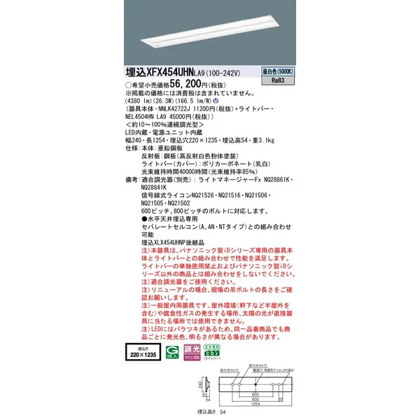 パナソニック 施設照明器具 LEDベースライト 天井埋込型 一体型 XFX454UHNLA9