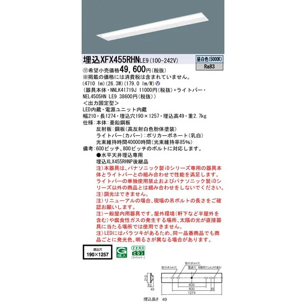 パナソニック 施設照明器具 LEDベースライト 天井埋込型 一体型 XFX455RHNLE9