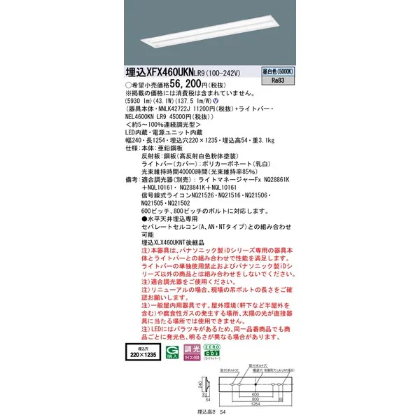 パナソニック 施設照明器具 LEDベースライト 天井埋込型 一体型 XFX460UKNLR9