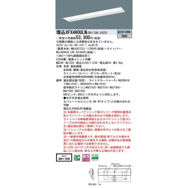 パナソニック 施設照明器具 LEDベースライト 天井埋込型 一体型 XFX460ULNLR9