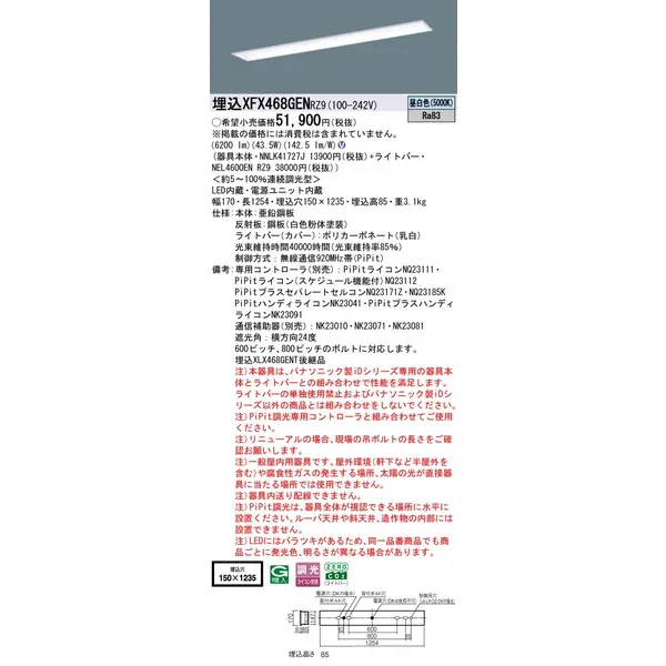 パナソニック 施設照明器具 LEDベースライト 天井埋込型 一体型 XFX468GENRZ9
