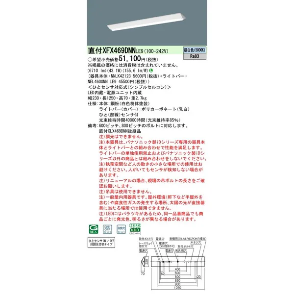 パナソニック LEDベースライト 天井直付型 一体型 XFX469DNNLE9