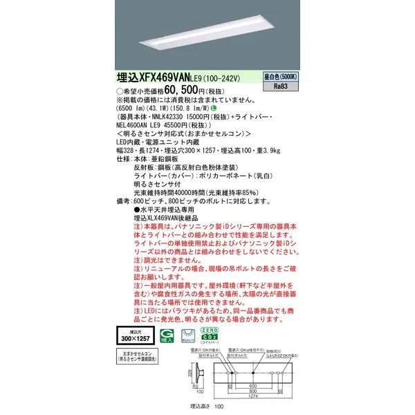 パナソニック 施設照明器具 LEDベースライト 天井埋込型 一体型 XFX469VANLE9