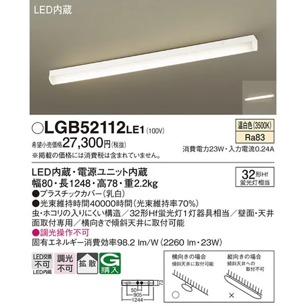 パナソニック 施設照明器具 LEDベースライト 天井直付型 一体型 LGB52112LE1