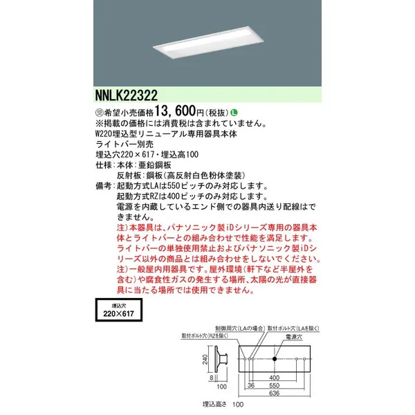 パナソニック 施設照明器具 LEDベースライト 天井直付 本体 NNLK22322