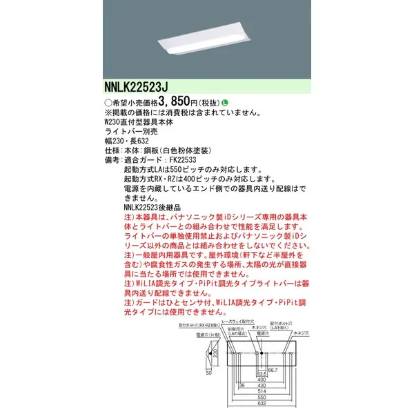 パナソニック 施設照明器具 LEDベースライト 天井直付 本体 NNLK22523J