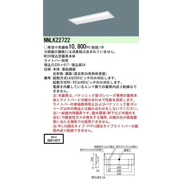 パナソニック 施設照明器具 LEDベースライト 天井直付 本体 NNLK22722