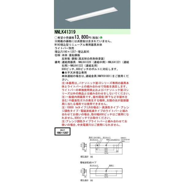 パナソニック 施設照明器具 LEDベースライト 天井直付 本体 NNLK41319