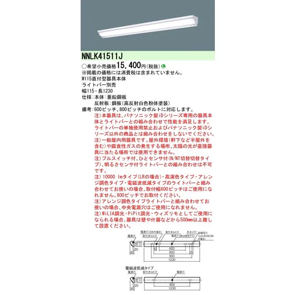 パナソニック 施設照明器具 LEDベースライト 天井直付 本体 NNLK41511J