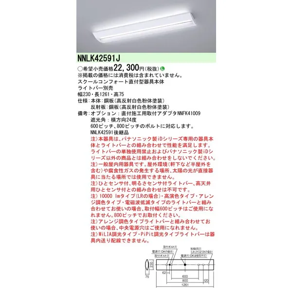 パナソニック 施設照明器具 LEDベースライト 天井直付 本体 NNLK42591