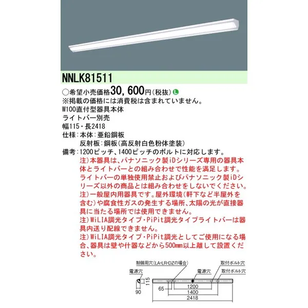 パナソニック 施設照明器具 LEDベースライト 天井直付 本体 NNLK81511