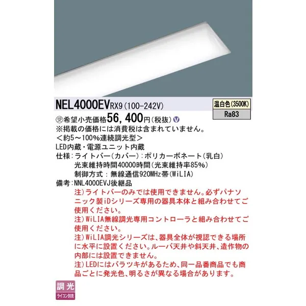 パナソニック 施設照明器具 LEDベースライト ライトバー NEL4000EVRX9