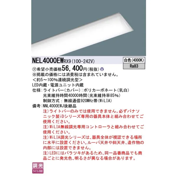 パナソニック 施設照明器具 LEDベースライト ライトバー NEL4000EWRX9