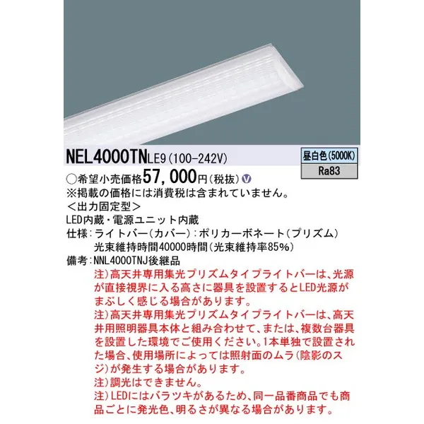 パナソニック 施設照明器具 LEDベースライト ライトバー NEL4000TNLE9