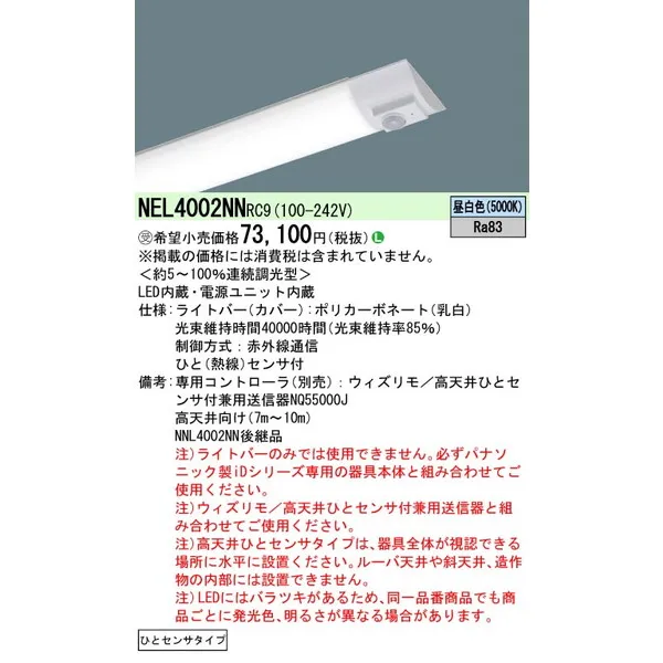 パナソニック 施設照明器具 LEDベースライト ライトバー NEL4002NNRC9