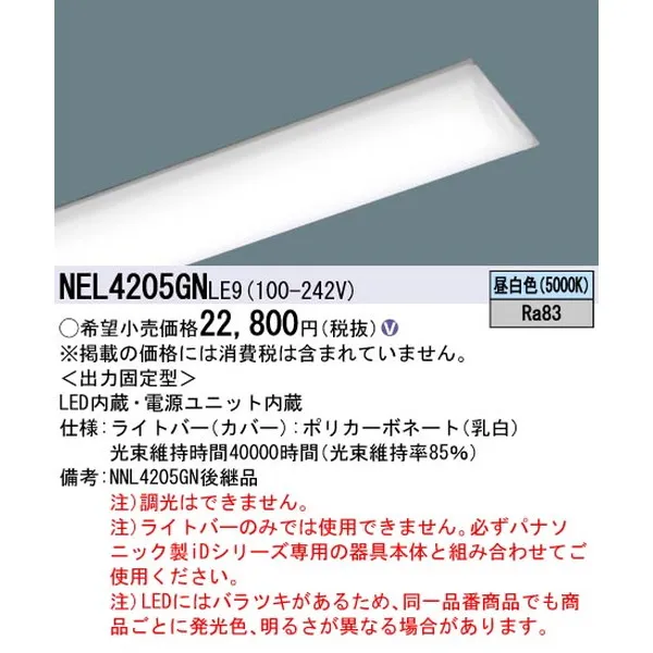 パナソニック 施設照明器具 LEDベースライト ライトバー NEL4205GNLE9
