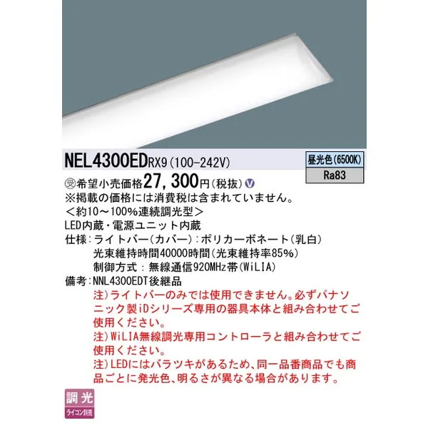 パナソニック 施設照明器具 LEDベースライト ライトバー NEL4300EDRX9