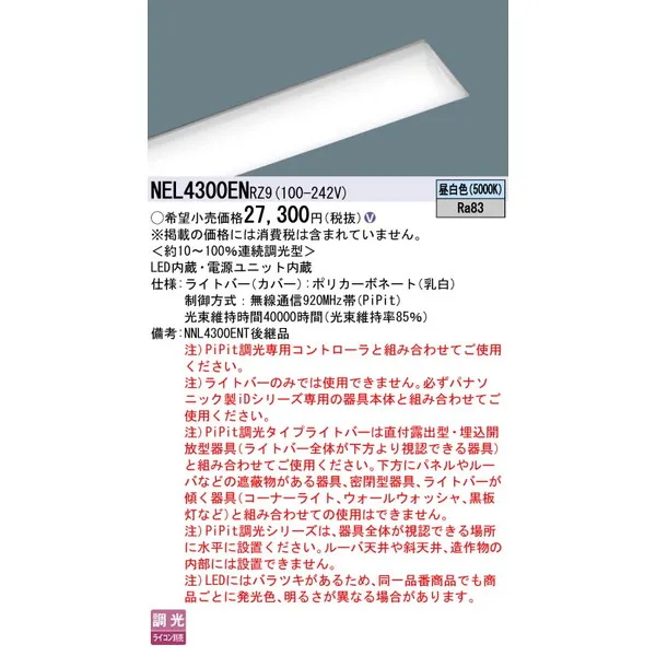 パナソニック 施設照明器具 LEDベースライト ライトバー NEL4300ENRZ9