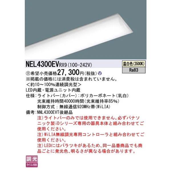 パナソニック 施設照明器具 LEDベースライト ライトバー NEL4300EVRX9