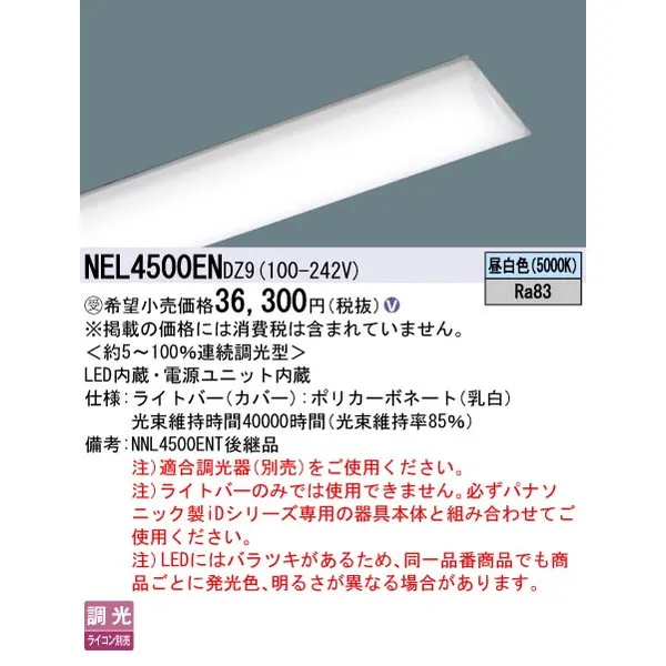 パナソニック 施設照明器具 LEDベースライト ライトバー NEL4500ENDZ9