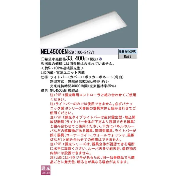 パナソニック 施設照明器具 LEDベースライト ライトバー NEL4500ENRZ9