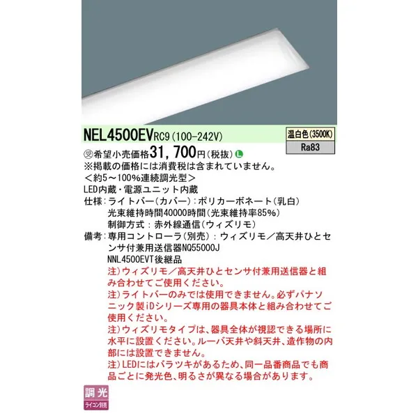 パナソニック 施設照明器具 LEDベースライト ライトバー NEL4500EVRC9